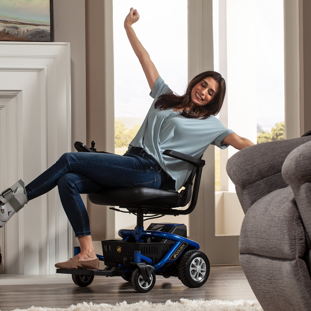 The Golden LiteRider Envy Power Wheelchair is the world’s lightest, most portable and maneuverable power chair! Available in limited colors: Envy Green, Satin Silver, Solar Flare Orange and Sunburst Yellow, as well as our standard Paradise Blue and Cherry Red.